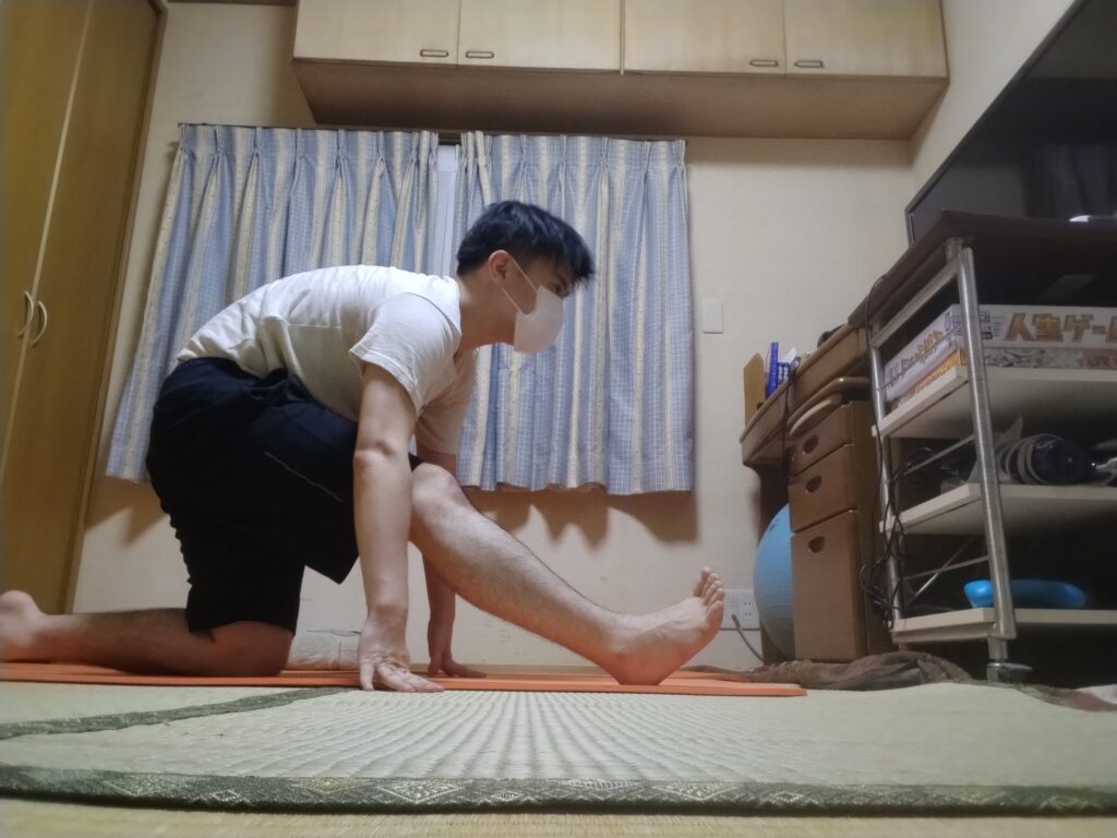 片足で胡座を描きつつもう片方で伸ばす。