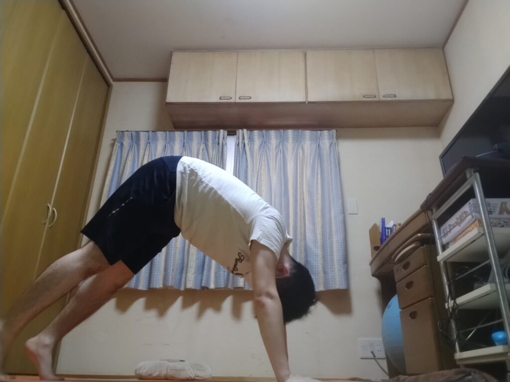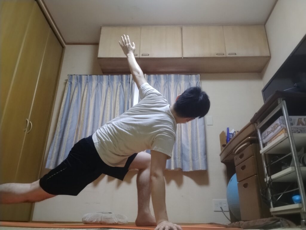 脇腹や背中をグデーっと伸ばす。