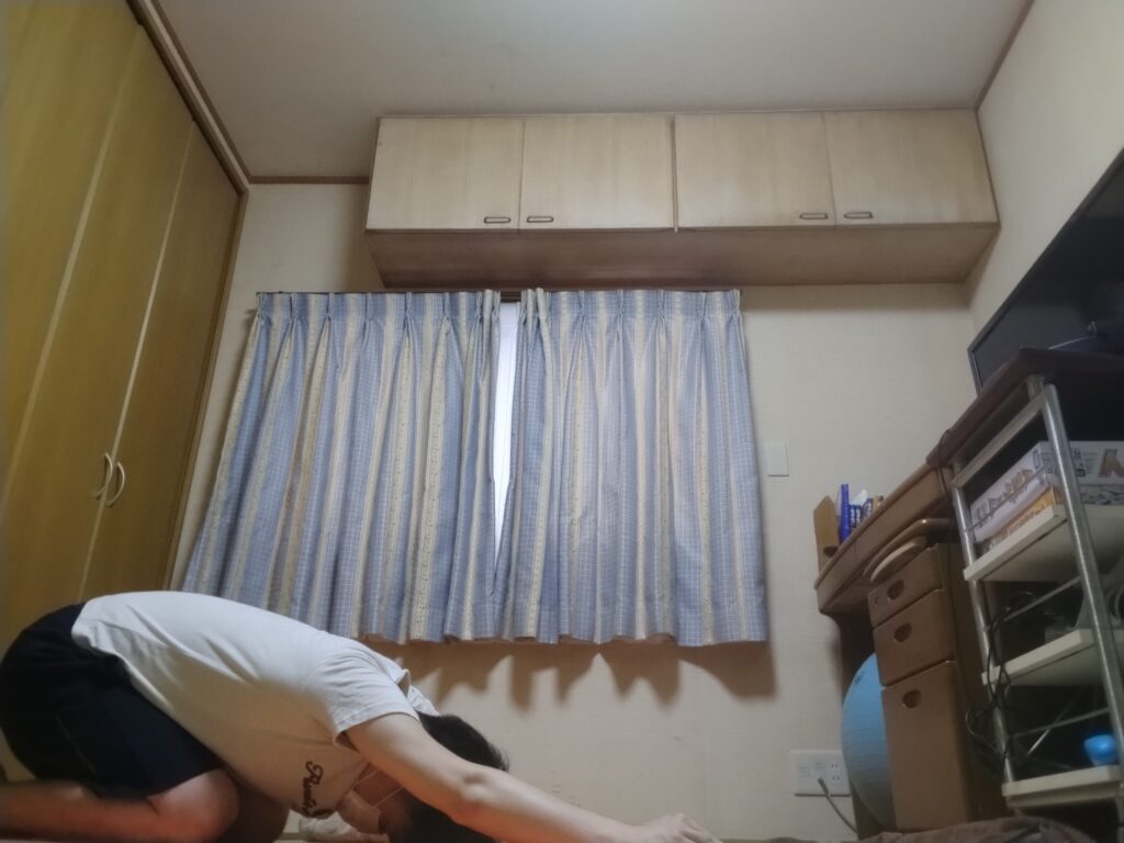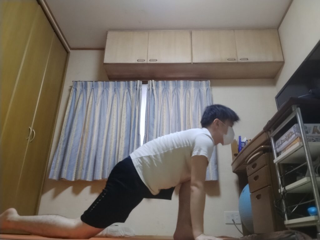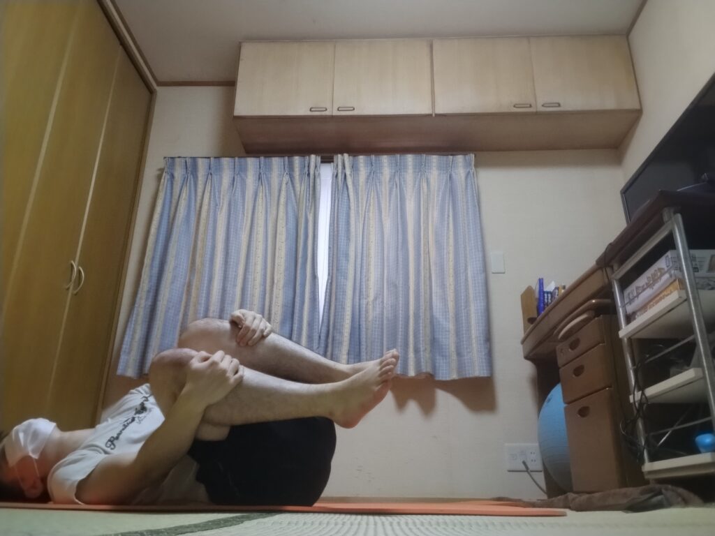 膝を縮めたり伸ばしたり。