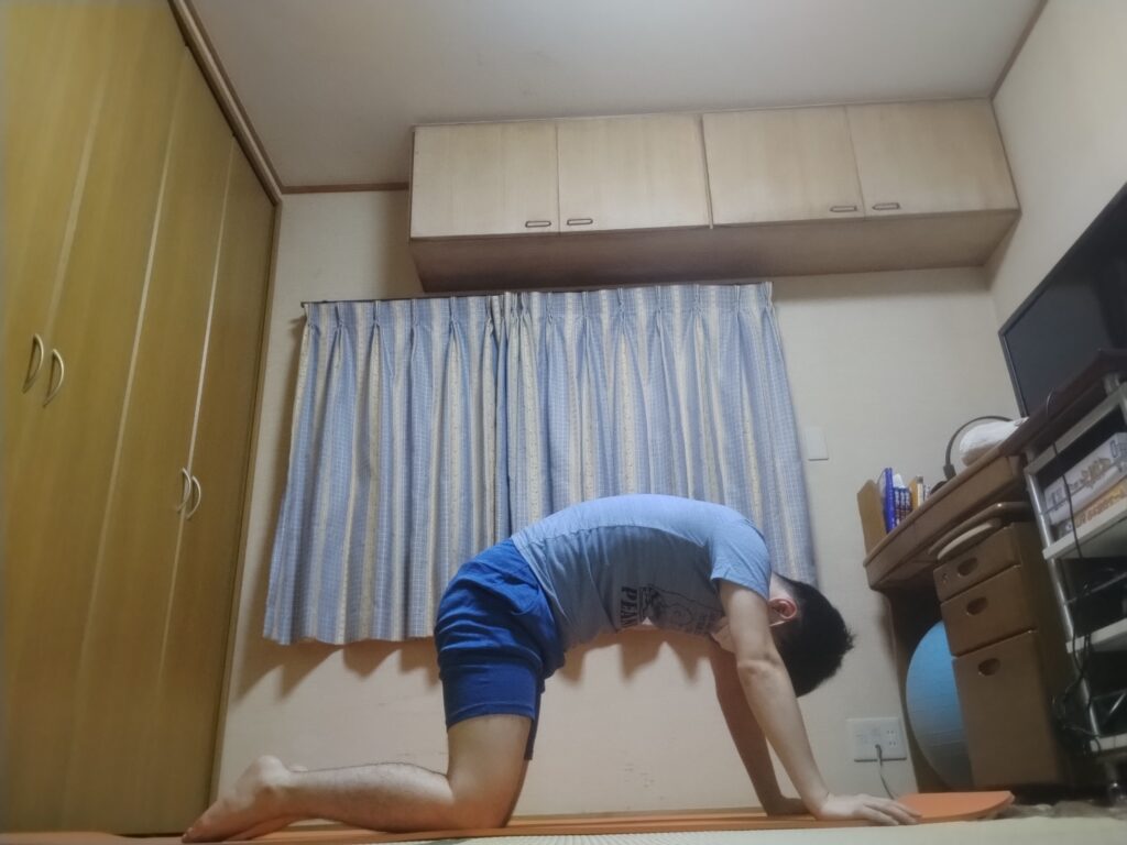 猫のポーズ(4枚目):いつもの準備体操。背中に効く〜