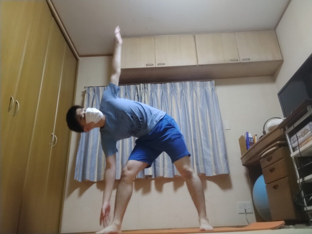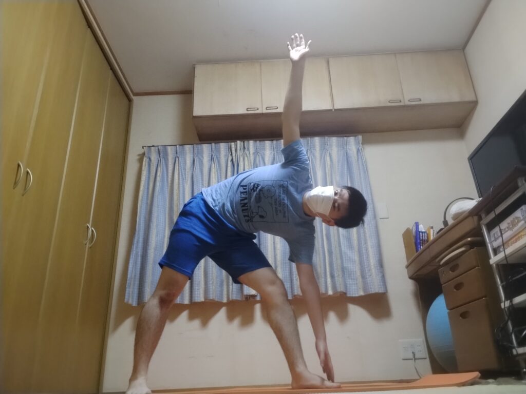 三角のポーズ(2,3枚目):全身を伸ばせて気持ちいい